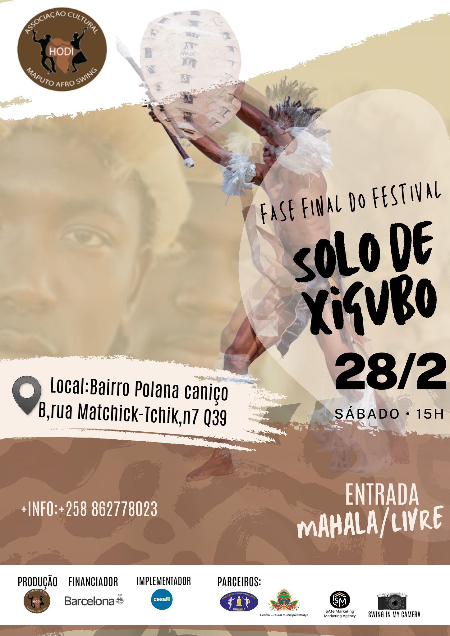 A Associação Cultural Hodi Maputo Afro Swing realiza, no próximo dia 28 de fevereiro de 2026, a fase final da primeira edição do Festival Solo de Xigubo, um evento dedicado à valorização, preservação e promoção da dança tradicional Xigubo, uma das expressões culturais mais emblemáticas de Moçambique.
